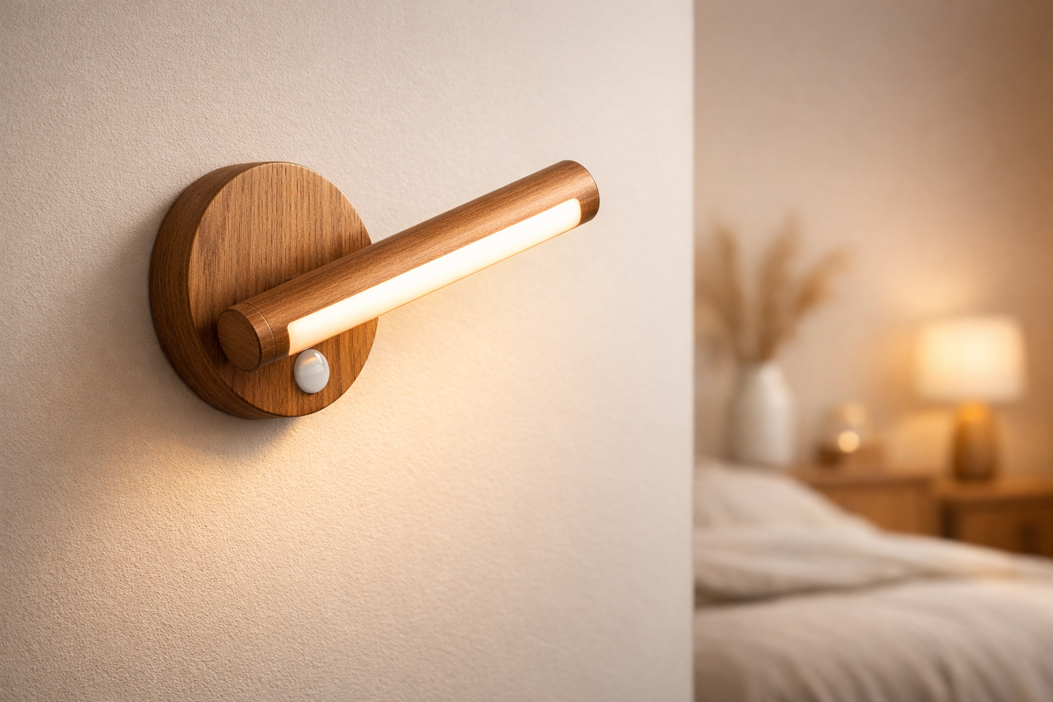 Magnetische LED-Lampe in Walnuss-Optik – ohne Bohren, in Sekunden installiert.